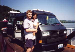 The vanagon goes for another ride - but this time on the river ferry, at Busses by the Arch 1998. |