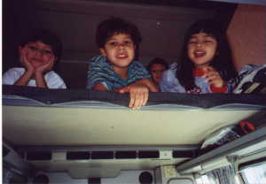 Everyone loves the pop-top bed. That's Christina on the right, with the Carlsgaard kids. |