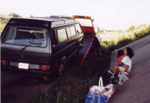 Carolyn and Kevin relax while we wait for a tow truck. |