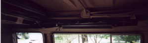 | Here's the passenger side of the van, with the curtain rail/shelf down, showing (dimly) some wiring. | |