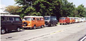 The vanagon goes for another ride - but this time on the river ferry, at Busses by the Arch 1998. |