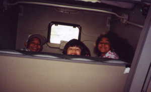Everyone loves the pop-top bed. That's Christina on the right, with the Carlsgaard kids. |